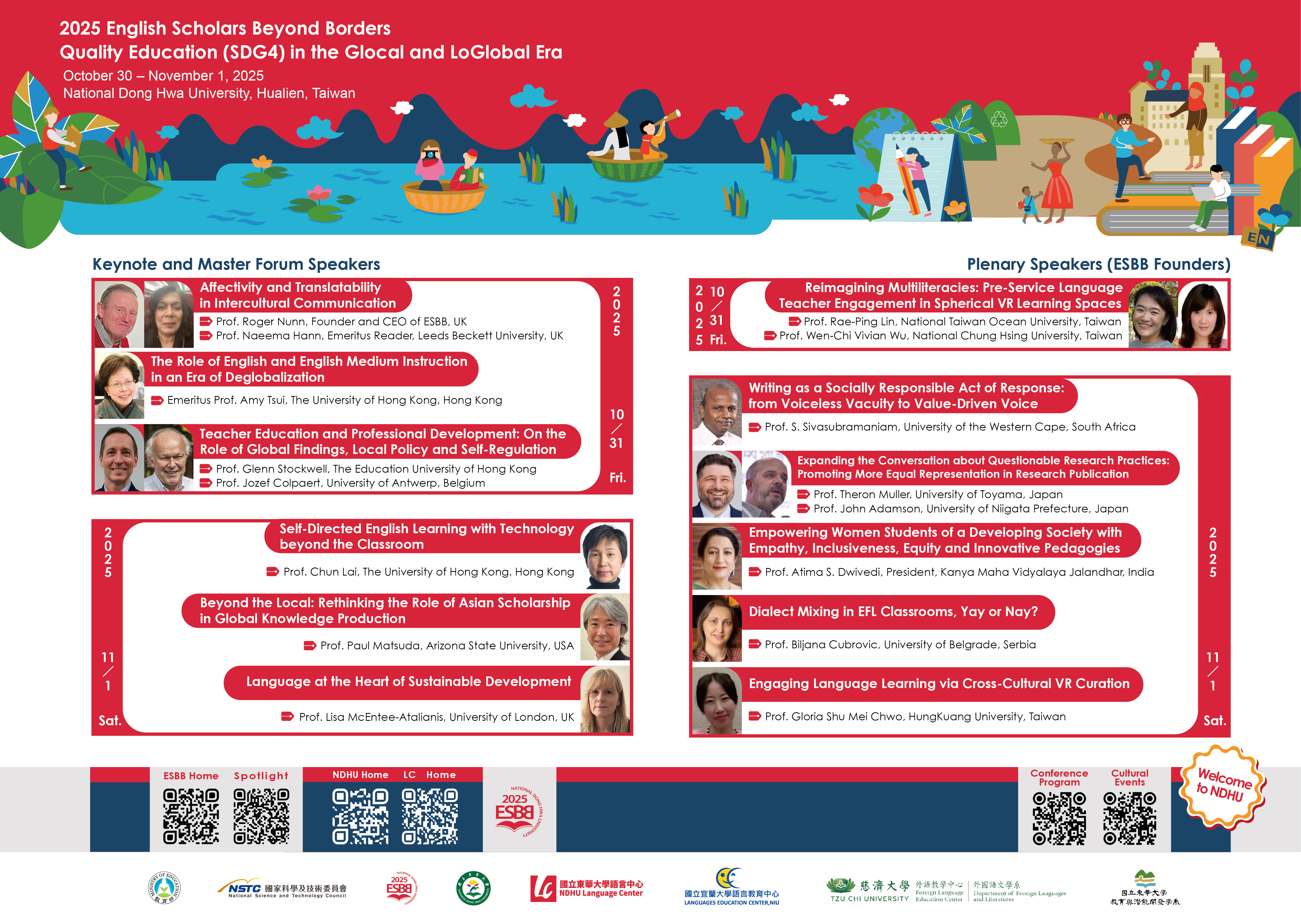 Explore Quality Education (SDG4) in the Glocal and LoGlobal Era with internationally acclaimed scholars with us. With sessions designed to inspire, challenge, and connect, the 2025 ESBB Conference invites researchers, educators, and practitioners to be part of meaningful conversations that shape the future of English education worldwide.